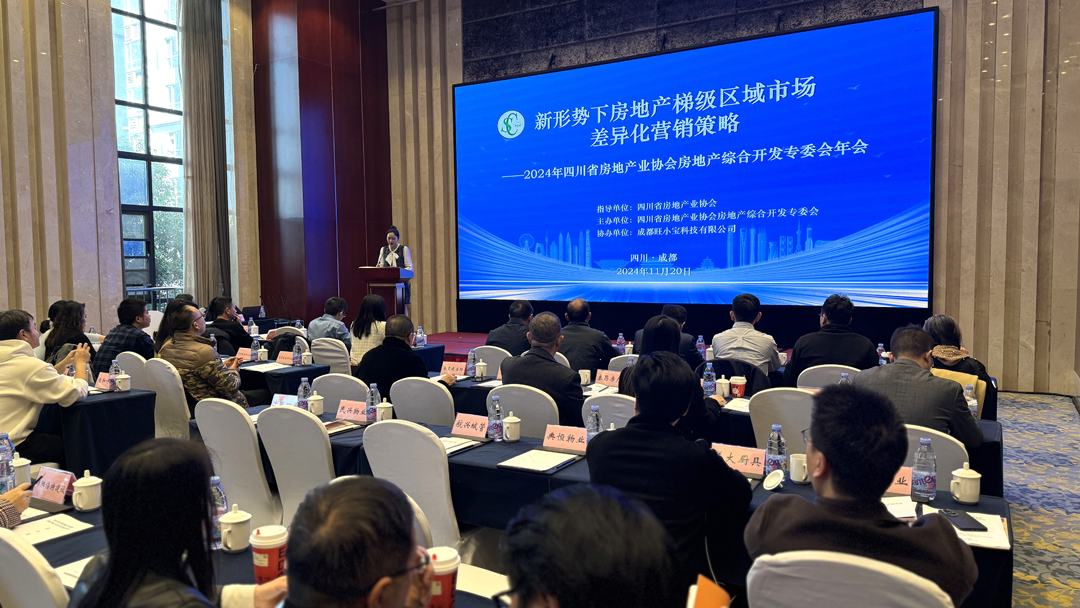11月20日,由四川省房地产业协会指导,省房协房地产综合开发专委会主办、成都旺小宝科技有限公司协办的“新形势下房地产梯级区域市场差异化营销策略——2024年四川省房地产业协会房地产综合开发专委会年会”在成都举办。来自全省部分市(州)房地产开发(经纪)协会以及贝壳找房(四川站)、成房置业、鸿山房产等会员单位代表60余人参加会议。省房协专职副会长郑友才、秘书长张代强,省房协房地产开发专委会副主任委员兼联络员、成都房协常务副秘书长严莉出席会议。